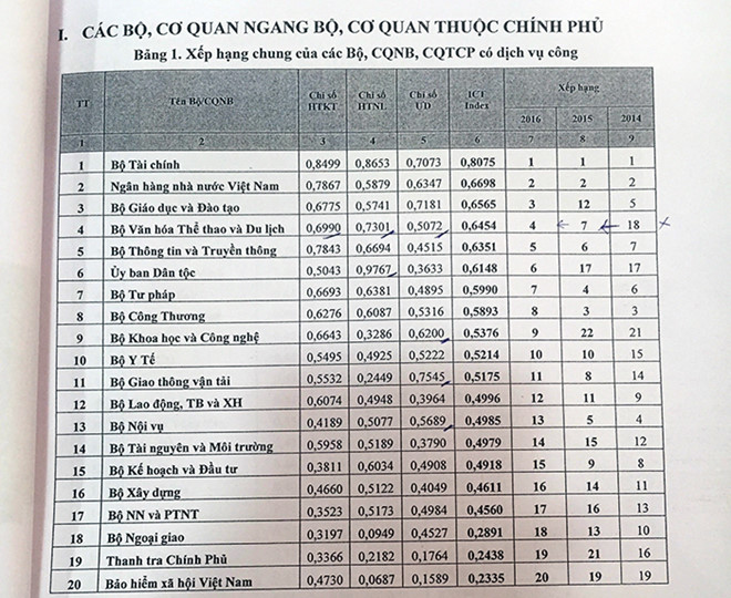 Theo đó, Bộ VHTTDL xếp thứ 4 trong bảng xếp hạng các bộ, cơ quan ngang bộ, cơ quan thuộc Chính phủ có dịch vụ công.