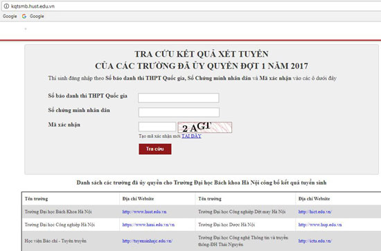 Trang hỗ trợ tra cứu kết quả xét tuyển của ĐH Bách khoa Hà Nội và 38 trường đã ủy quyền đợt 1 năm 2017.