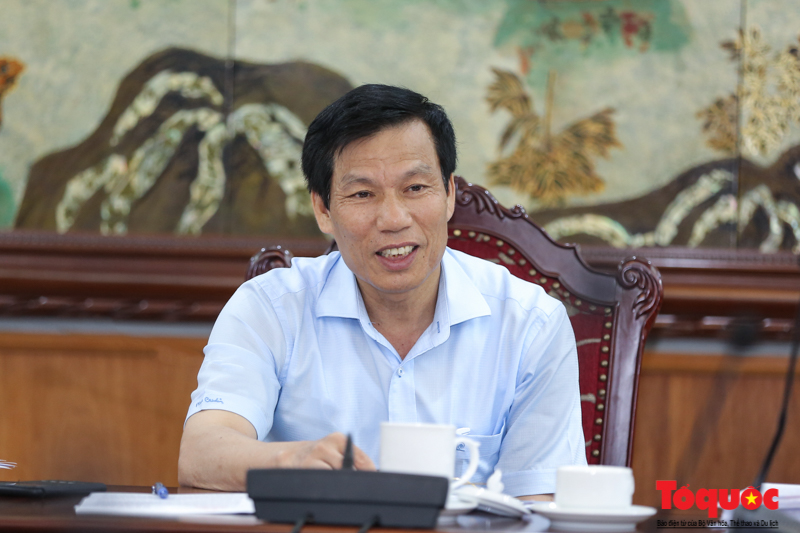 Bộ trưởng Nguyễn Ngọc Thiện tại buổi làm việc. Ảnh: Minh Khánh.