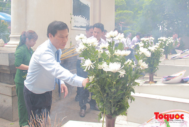 Bộ trưởng dâng hoa tại mộ 10 cô gái Ngã ba Đồng Lộc (Hà Tĩnh).