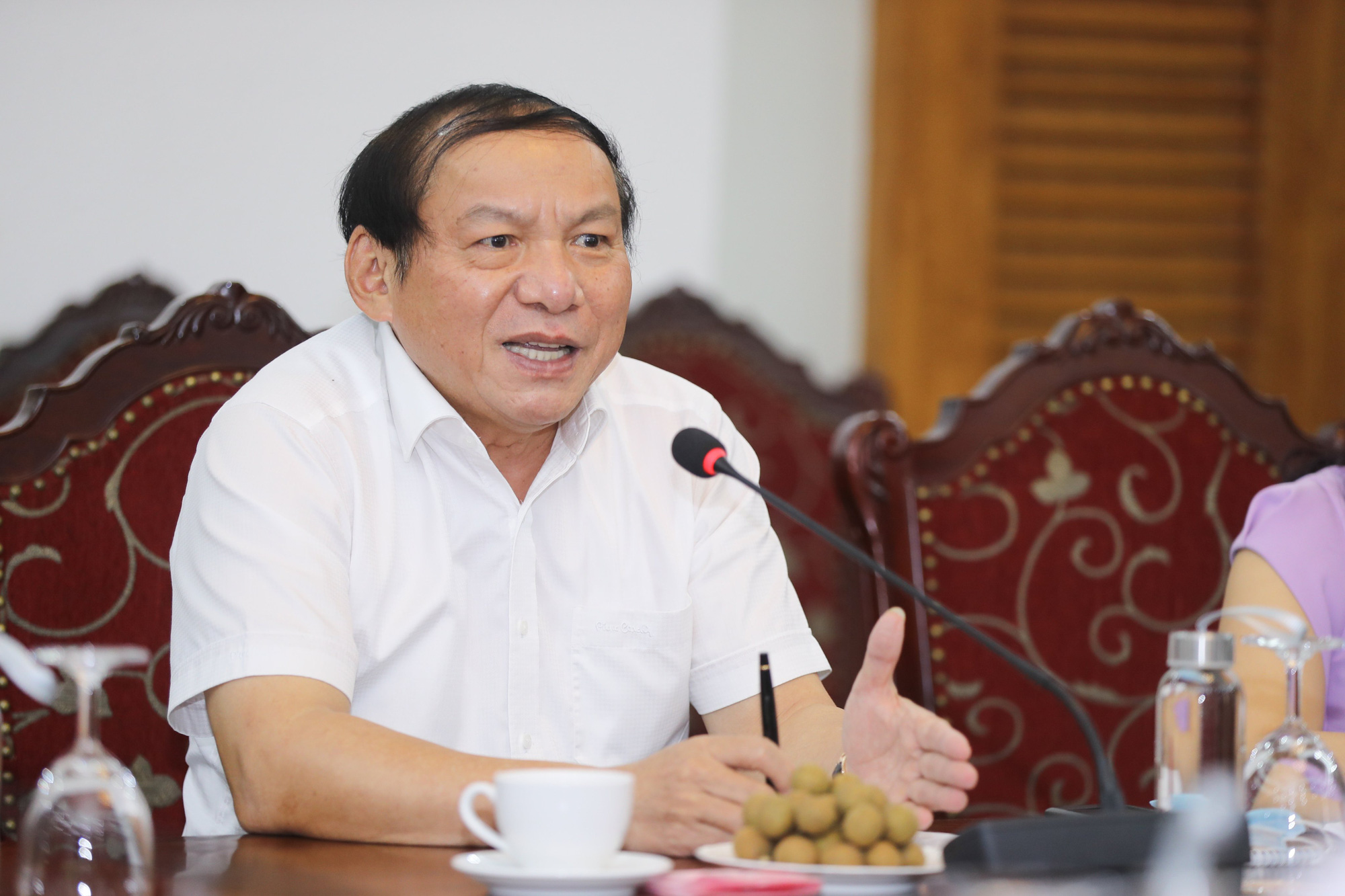 Bộ trưởng Nguyễn Văn Hùng phát biểu tại buổi tiếp.