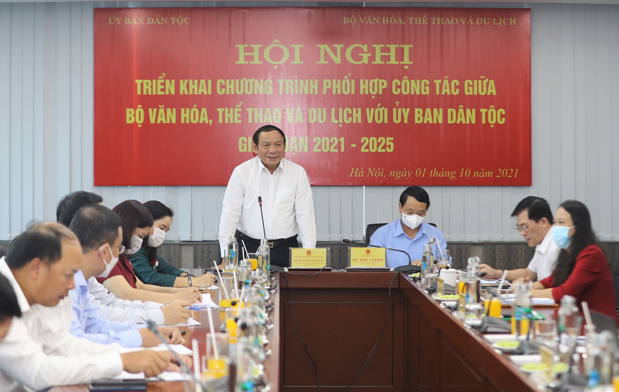 Bộ trưởng cũng đề nghị, ngay sau khi triển khai chương trình phối hợp, Bộ VHTTDL và Ủy ban Dân tộc sẽ gửi văn bản về các sở VHTTDL và ban Dân tộc của các địa phương để triển khai hội nghị như ở cấp Trung ương.