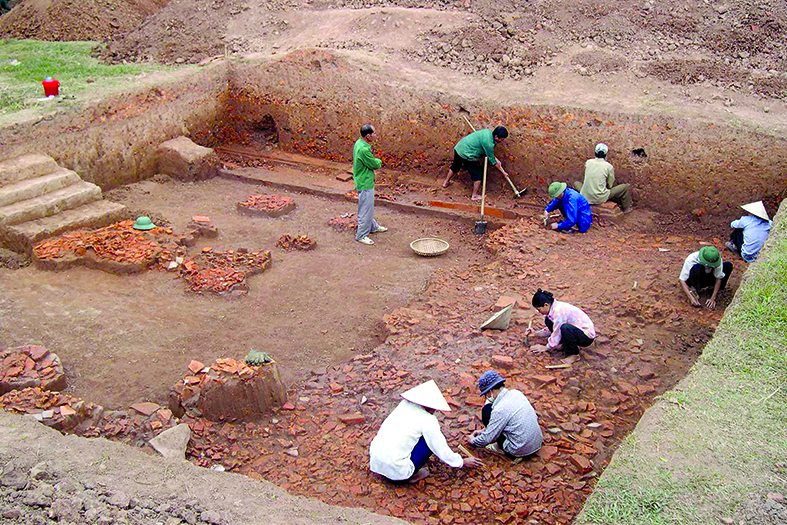 Xử lý hố khai quật di tích Báo Ân thời Trần