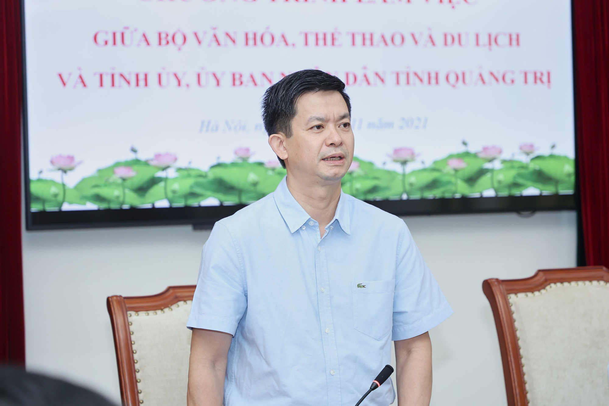 Phát biểu tại buổi làm việc, Bí thư Tỉnh ủy Quảng Trị Lê Quang Tùng bày tỏ vui mừng về những định hướng phát triển mới và lớn mà Bộ VHTTDL đã đề ra vào đầu nhiệm kỳ 2021-2026. Từ đó, ông kỳ vọng Bộ VHTTDL sẽ tạo được sự đột phá trong nhiệm kỳ này.