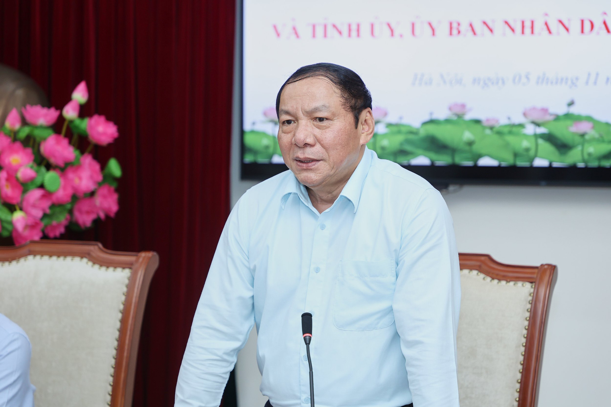 Bộ trưởng Nguyễn Văn Hùng phát biểu tại buổi làm việc.