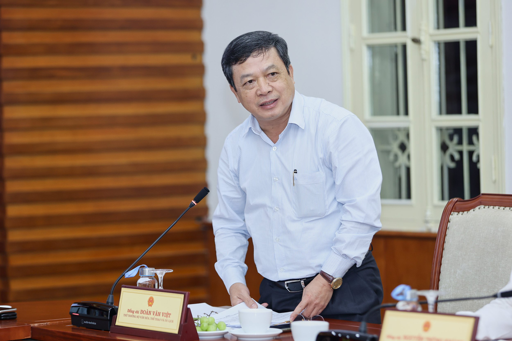 Thứ trưởng Bộ VHTTDL Đoàn Văn Việt phát biểu tại buổi làm việc.