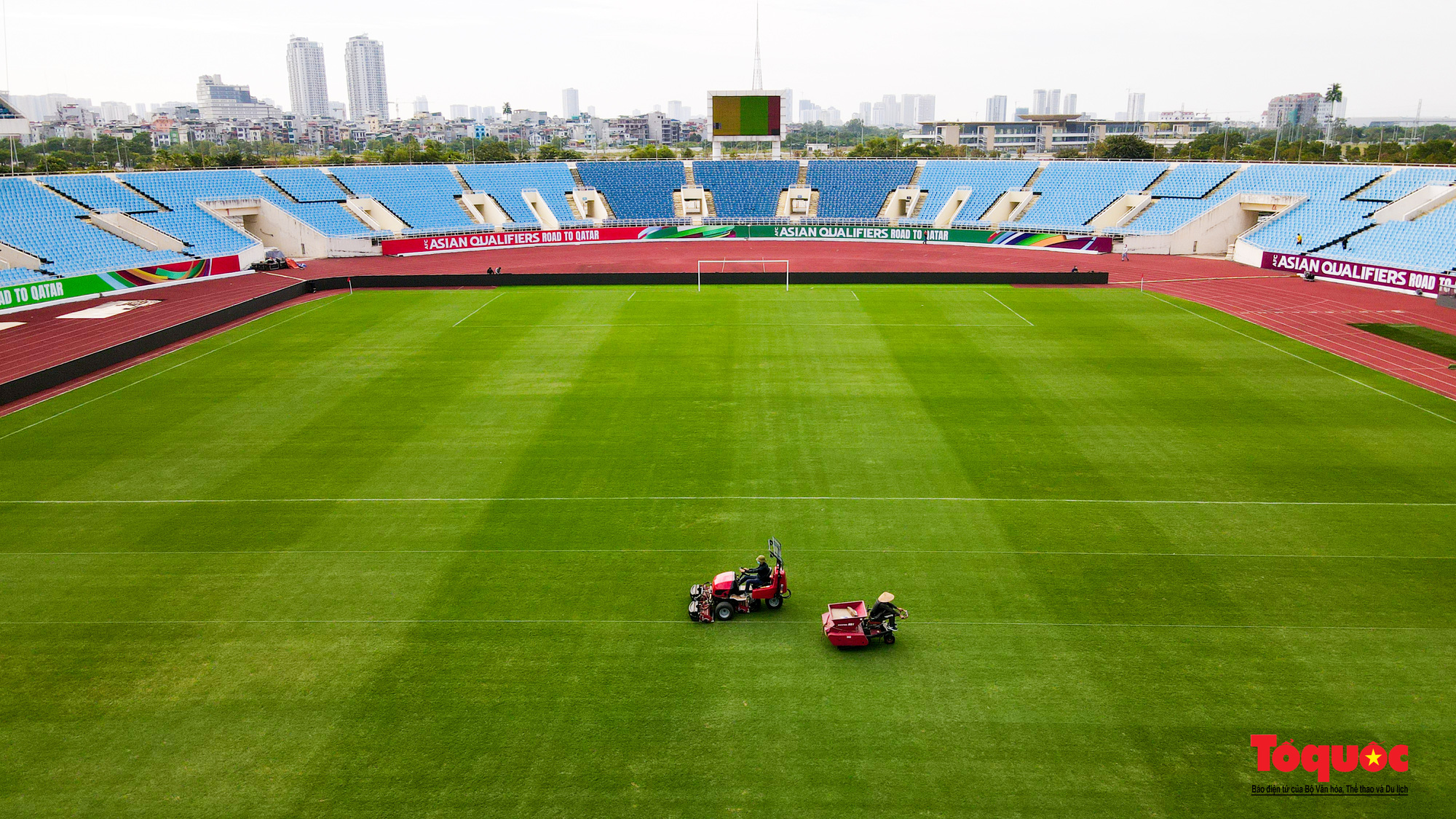 Sau thời gian tích cực chăm sóc, cải tạo, mặt cỏ sân vận động đã cho màu xanh tốt, đạt tiêu chuẩn. Để đảm bảo tốt nhất trước khi bàn giao cho AFC, Thứ trưởng Hoàng Đạo Cương yêu cầu việc chăm sóc, dọn dẹp sạch sẽ mặt sân cỏ phải được đảm bảo liên tục.