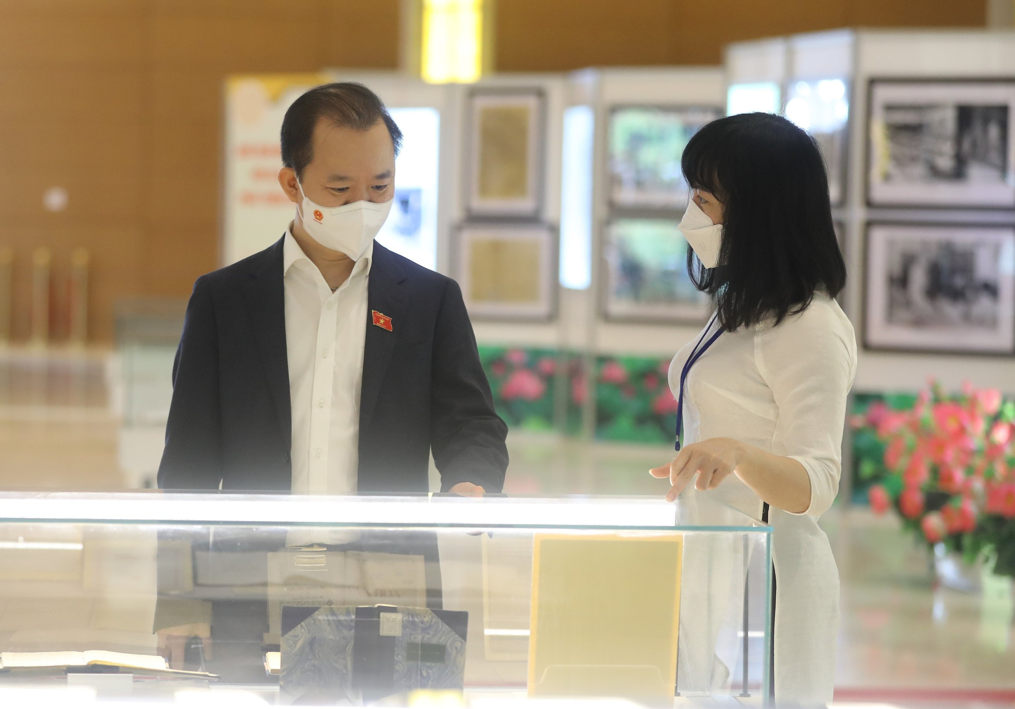 ĐBQH Bùi Hoài Sơn - Ủy viên Thường trực Ủy ban Văn hóa, Giáo dục của Quốc hội (trái) tham quan triển lãm