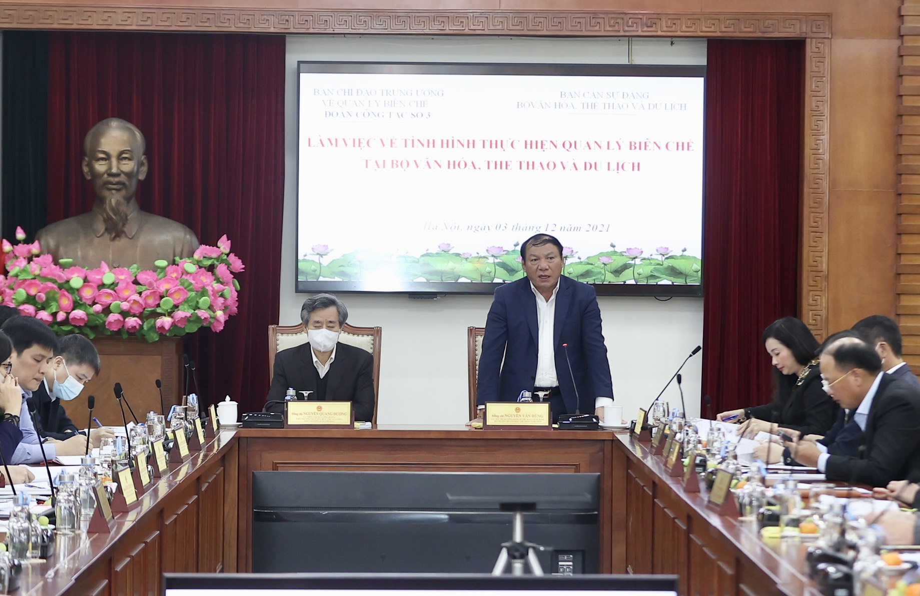 Nhìn chung, việc chấp hành các quy định trong công tác tổ chức cán bộ của Bộ VHTTDL được thực hiện nền nếp, bài bản, phù hợp với đặc điểm tình hình, điều kiện của Bộ và đúng quy định. Tuy nhiên, về công tác quản lý và sử dụng biên chế, do tính chất đặc thù hoạt động của ngành, nghề, lĩnh vực cũng có nhiều khó khăn, hạn chế. Tại buổi làm việc, đại diện một số đơn vị của Bộ VHTTDL như Nhà hát Chèo Việt Nam, Dàn Nhạc giao hưởng Việt Nam, Đại học Sân khấu điện ảnh Hà Nội… đã nêu những khó khăn cũng như những đặc thù của nghệ thuật trong quá trình giảm biên chế. Đại diện một số đơn vị này cũng đề xuất có cơ chế đặc thù phù hợp trong thời gian tới để ổn định nhân lực, hoàn thành nhiệm vụ được Đảng và Nhà nước giao phó.