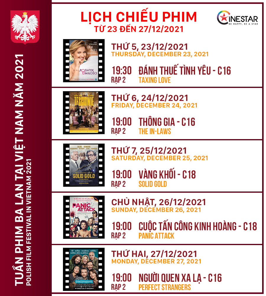 (TTCNTT) - Tuần phim Ba Lan tại Việt Nam năm 2021 sẽ diễn ra từ ngày 23/12 đến ngày 28/12 tại Thành phố Hồ Chí Minh và thành phố Đà Nẵng.