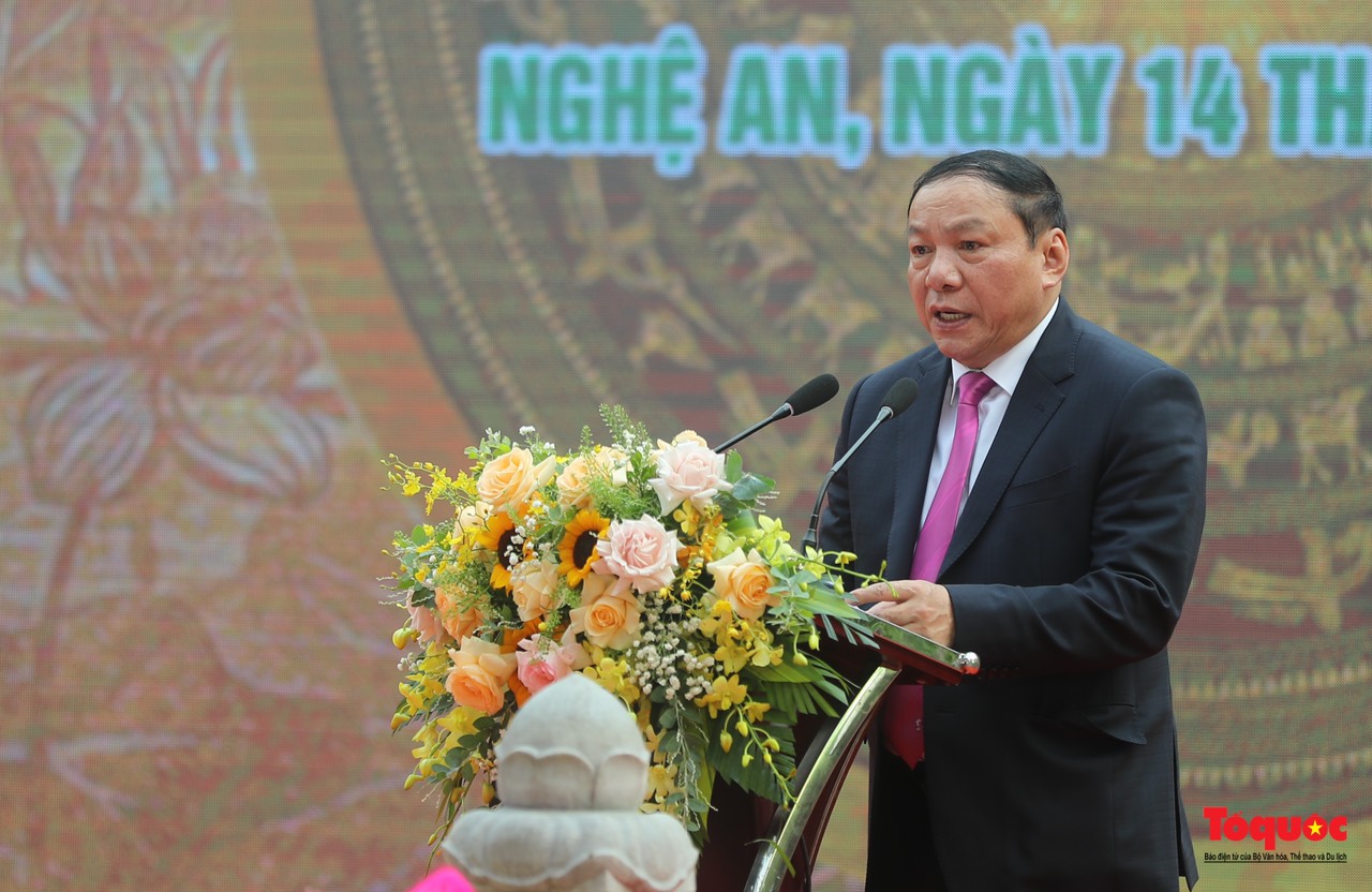 Tham dự buổi lễ có ông Võ Văn Thưởng, Uỷ viên Bộ chính trị, Thường trực Ban Bí thư; ông Vũ Đức Đam, Ủy viên Trung ương Đảng, Phó Thủ tướng Chính phủ; ông Nguyễn Văn Hùng, Ủy viên Trung ương Đảng, Bộ trưởng Bộ VHTTDL, ông Thái Thanh Quý, Ủy viên Trung ương Đảng, Bí thư tỉnh ủy Nghệ An; ông Nguyễn Đức Trung, Chủ tịch UBND tỉnh Nghệ An.