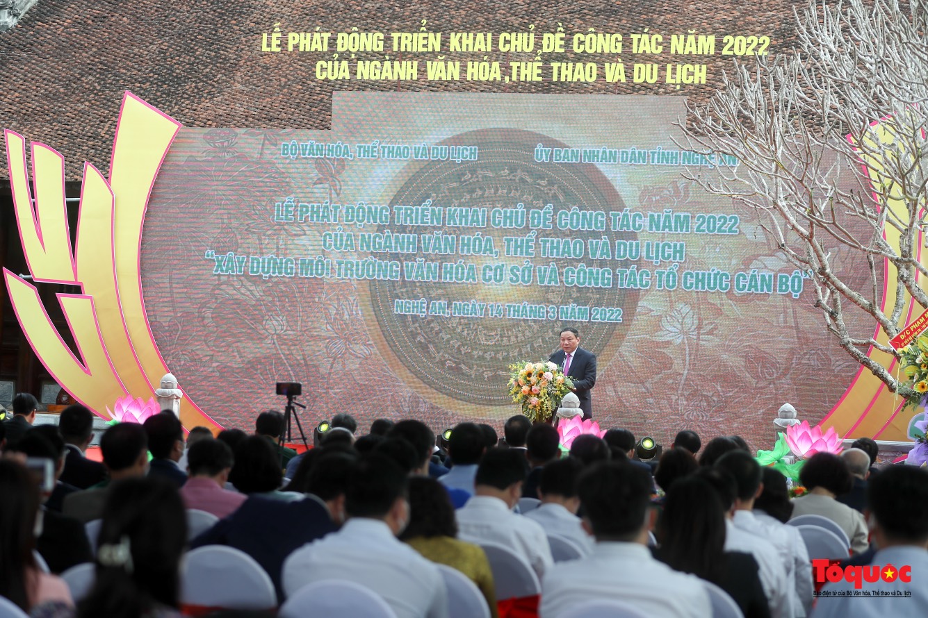 Trên tinh thần ấy, Bộ lựa chọn chủ đề công tác năm 2022 là "Năm xây dựng môi trường văn hóa cơ sở và công tác tổ chức cán bộ", trong đó môi trường văn hóa là trọng tâm, là trung tâm để thúc đẩy cho Du lịch và Thể thao phát triển. Xây dựng môi trường văn hóa phải tạo ra được sản phẩm là hoạt động văn hóa, thiết chế văn hóa, cảnh quan văn hóa, ứng xử văn hóa, nếp sống văn hóa… cùng với xây dựng con người Việt Nam thời kỳ đổi mới là nhiệm vụ quan trọng để góp phần xây dựng, giữ gìn, chấn hưng và phát triển nền văn hóa của dân tộc.
