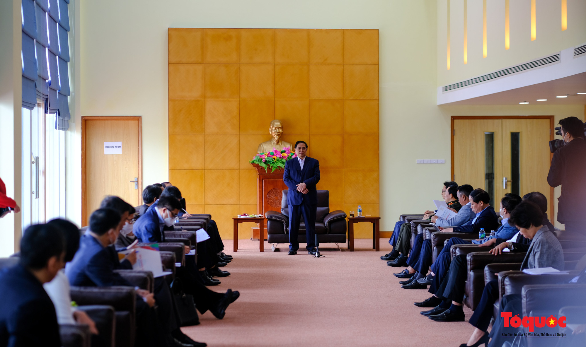 Trong buổi làm việc giữa Thủ tướng với Bộ VHTTDL và các cơ quan ban ngành, TP Hà Nội ngay tại phòng họp của Sân vận động Quốc gia Mỹ Đình, Bộ trưởng Nguyễn Văn Hùng đã báo cáo chung về công tác chuẩn bị cho SEA Games 31.