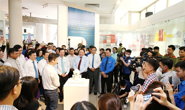 Dự và cắt băng khai mạc triển lãm có Ủy viên Bộ Chính trị, Thường trực Ban Bí thư Trung ương Đảng Võ Văn Thưởng; Ủy viên BCH Trung ương Đảng, Phó Trưởng Ban Thường trực Ban Tuyên giáo Trung ương Lại Xuân Môn; Ủy viên BCH Trung ương Đảng, Bộ trưởng Bộ VHTTDL Nguyễn Văn Hùng; Chủ tịch Hội Cựu Thanh niên Xung phong Việt Nam Vũ Trọng Kim; Bí thư thứ Nhất Trung ương Đoàn TNCS Hồ Chí Minh, Chủ tịch Hội Liên hiệp Thanh niên Việt Nam Nguyễn Ngọc Lương; đại diện một số Đại sứ quán các nước tại Việt Nam; đại diện các Bộ, ban, ngành...