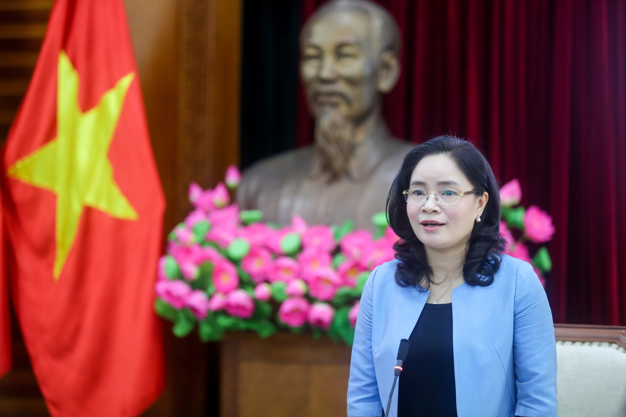 Thứ trưởng Bộ VHTTDL Trịnh Thị Thủy phát biểu tại buổi gặp mặt.