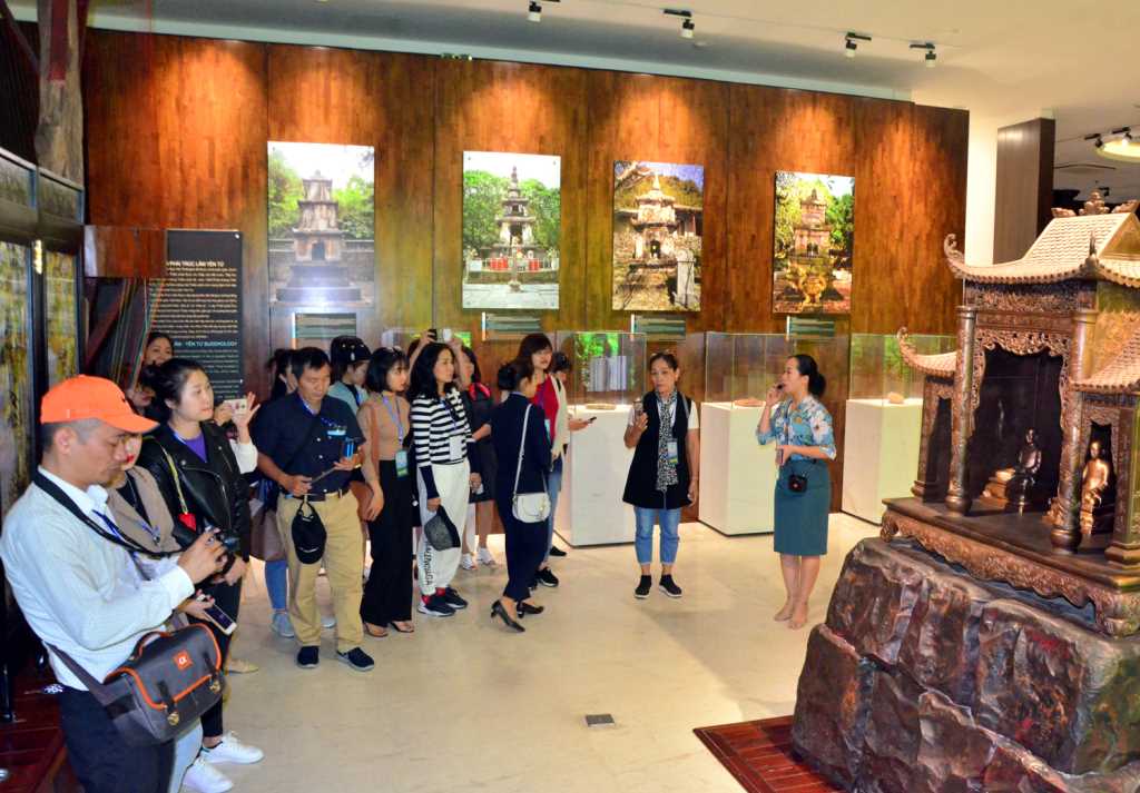 Nhân viên Bảo tàng Quảng Ninh thuyết minh, giới thiệu cho du khách tại điểm đến.